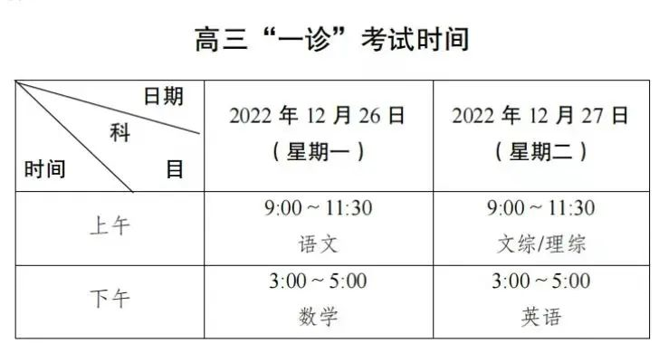 2023届成都一诊时间定于2022年12月26-27日进行,请同学们做好考试准备。2023届成都一诊考试时间/考试范围已确定。具体详情如下: