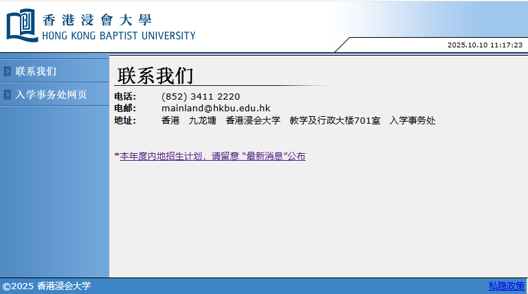 申请入口:https://iss14.hkbu.edu.hk/ugmlams/application/contact.php