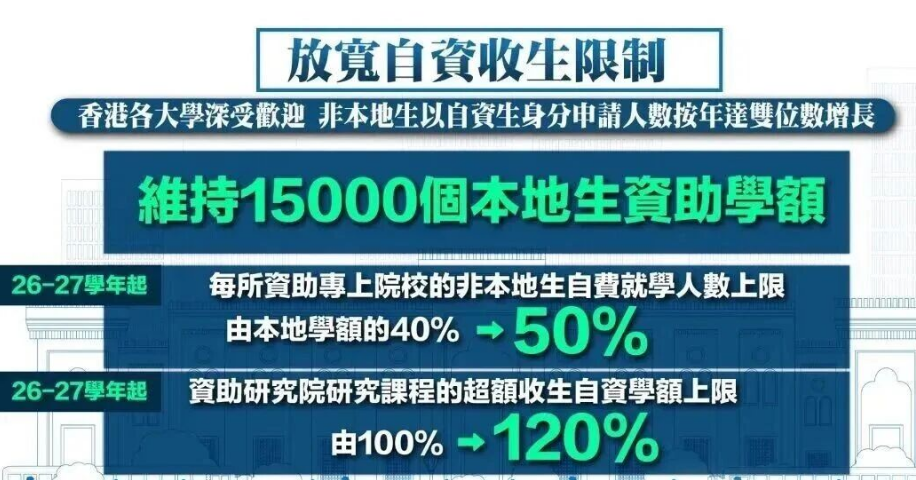 根据香港政府的新政策,香港八大高校的非本地生招生比例将从40%提升至50%。