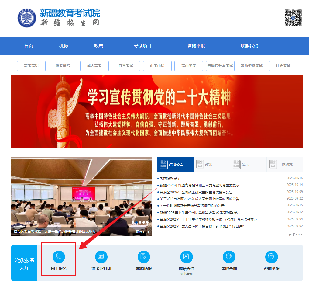 自治区2026年普通高考网上报名系统将于2025年10月16日中午12时开通,具体报名时间由各地(州、市)教育考试机构另行通知。