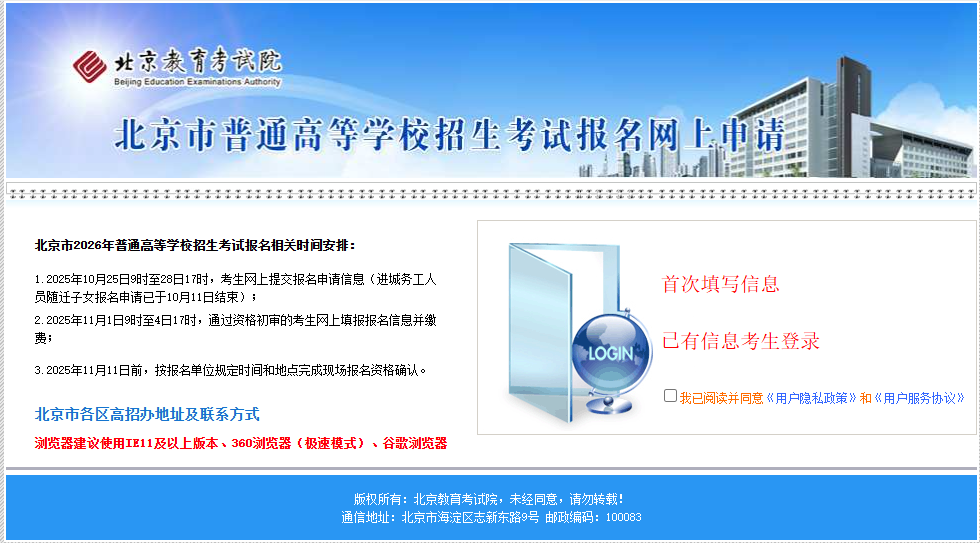 10月17日,北京市2026年普通高等学校招生报名工作的通知发布,2026北京高考网上报名时间为2025年10月25日9时至28日17时,2026北京高考报名入口在哪里?北京高考在线团队特意整理了相关内容如下: