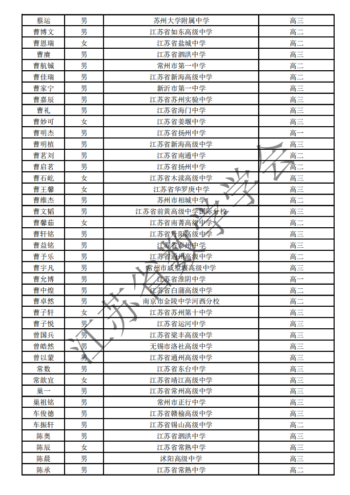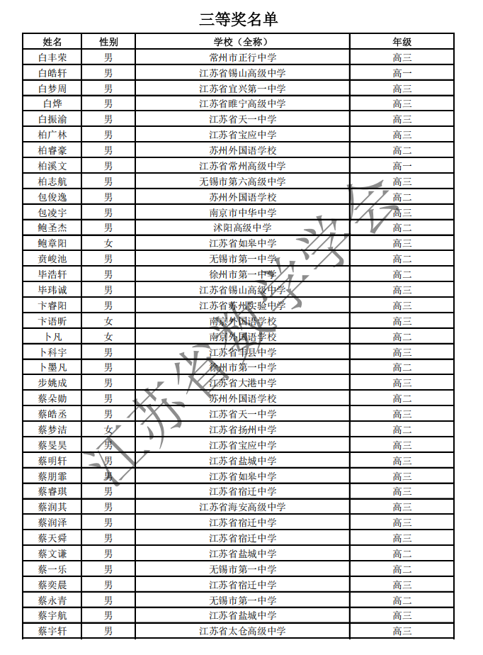 2025第41届高中数学联赛江苏赛区省三获奖名单已经公布,北京高考在线整理了2025第41届高中数学联赛江苏赛区省三获奖名单,希望对考生有所帮助。