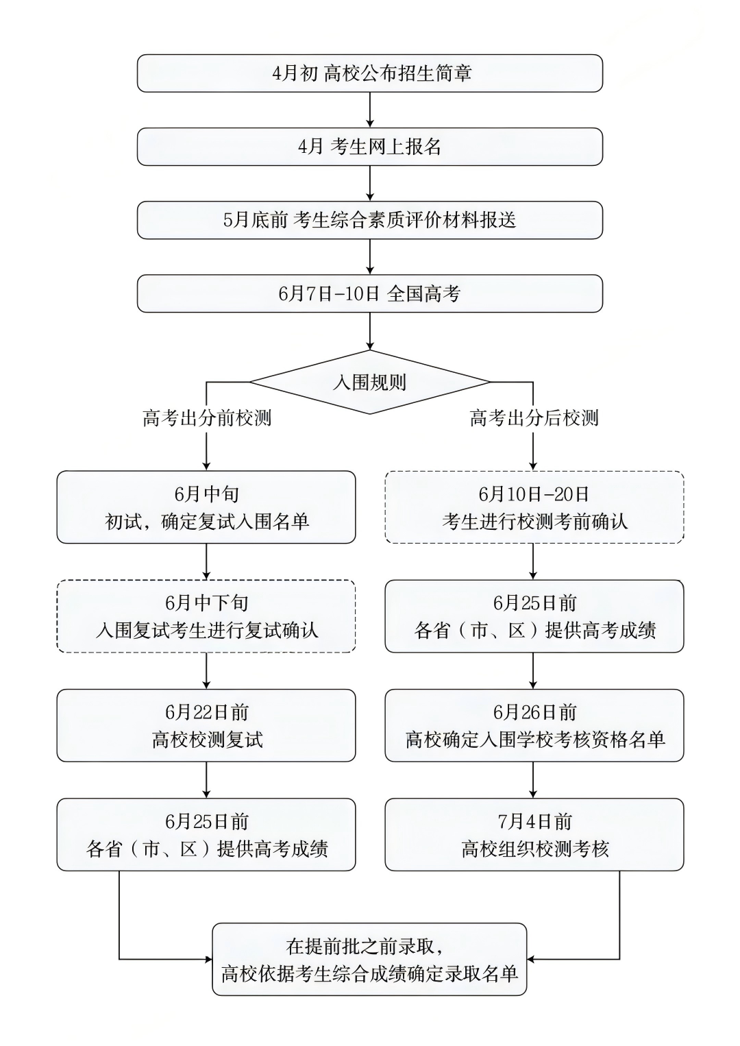 💡校测考核难度一般能够达到竞赛水平,部分高校如清北等可能会达到竞赛复赛水平。以下为大家整理了强基计划选拔的流程:
