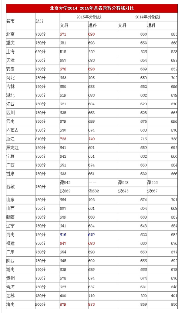 2015年,北京大学早已经截止了在全国的录取。为了方便考生和家长对北大录取分数有一个大致了解,小编特意汇总了2014、2015年的录取分数。 从上表可以看出,北大在部分省份的分数有较大幅度的上升。特别是北京地区有较大的涨幅。跟北京知分填志愿2015年,北京大学早已经截止了在全国的录取。为了方便考生和家长对北大录取分数有一个大致了解,小编特意汇总了2014、2015年的录取分数。