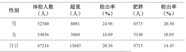 不信一起来看看!2015年北京市高招考生体重超标的统计数据显示,在2015受检的67216名考生中,9713人为肥胖人群,检出率为14.45%,男生检出率明显高于女生。