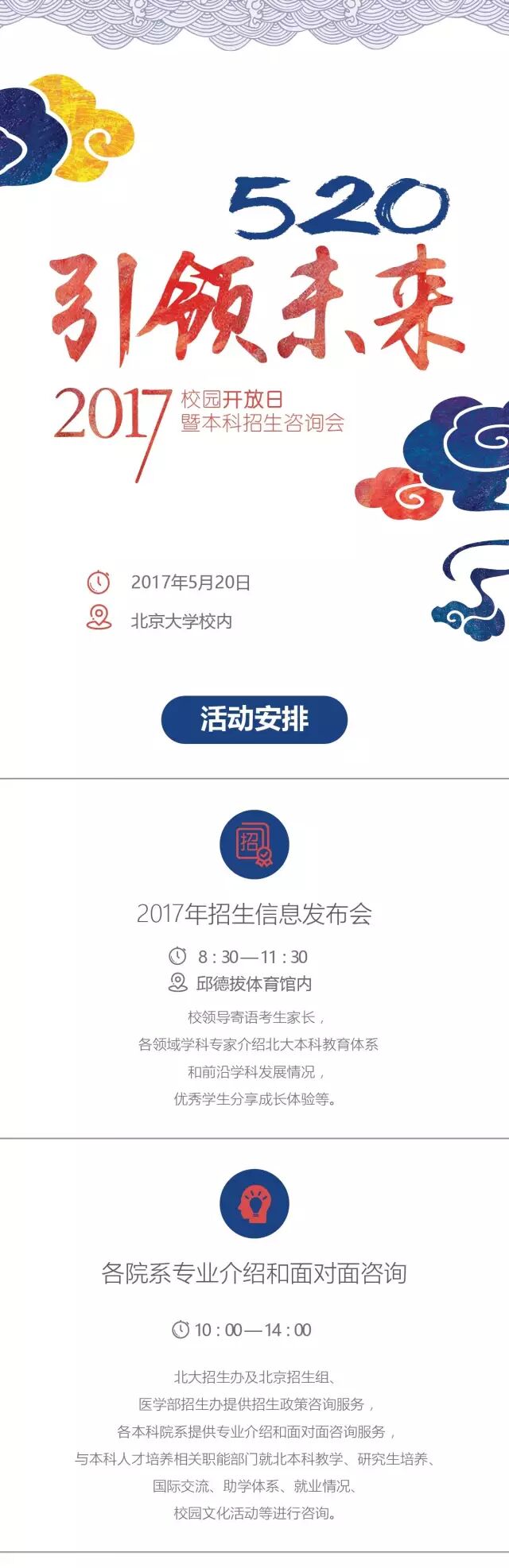 5月20日,北大将举行校园开放日活动,目前具体的时间安排已经出炉,有意向的考生可前往参加!