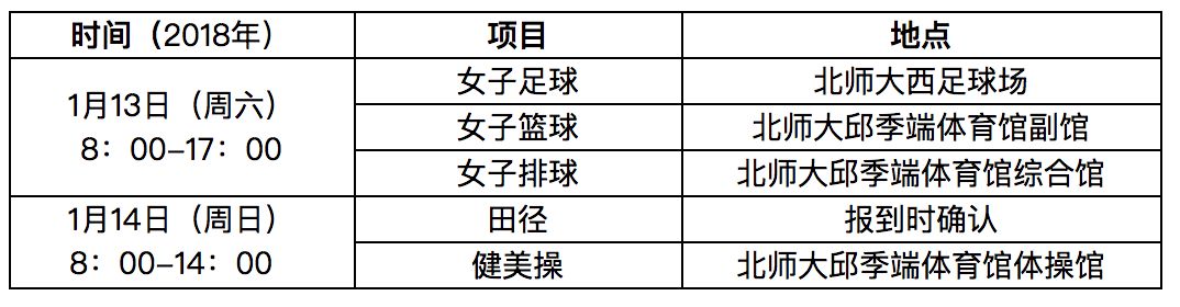 1)时间地点:考生须于2018年1月12日8:00-12:00到北师大体育与运动学院(邱季端体育馆)报到。