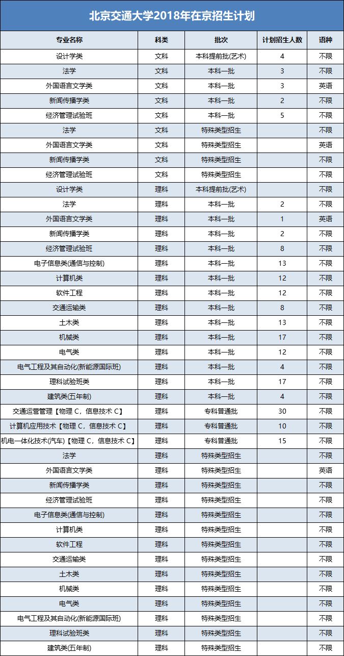2018年,北京交通大学在京统招197人,其中本科,文科17人,理科125人!专科招生理科55人!