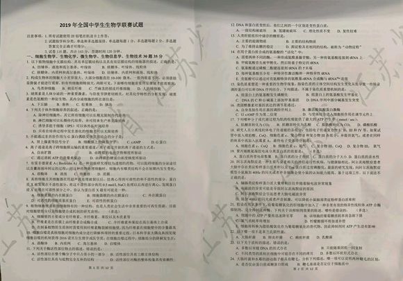 2019年全国中学生生物学联赛于5月12日上午10:00-12:00进行,目前考试已经结束。京考一点通团队第一时间整理相关试题,供广大中学老师、家长及考生参考。
