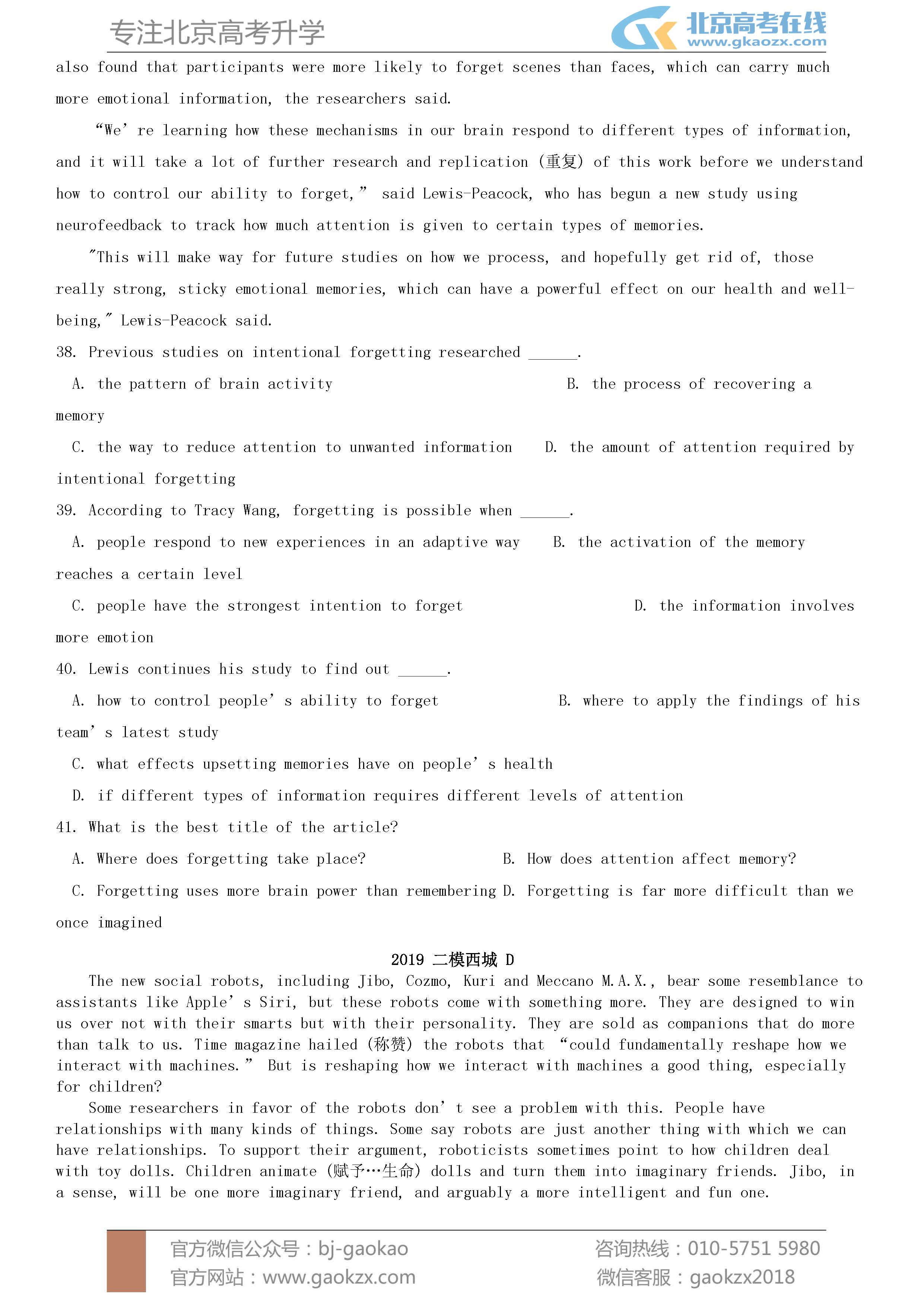 2019北京高三二模英语阅读理解AB试题及答案汇编2019-05-14