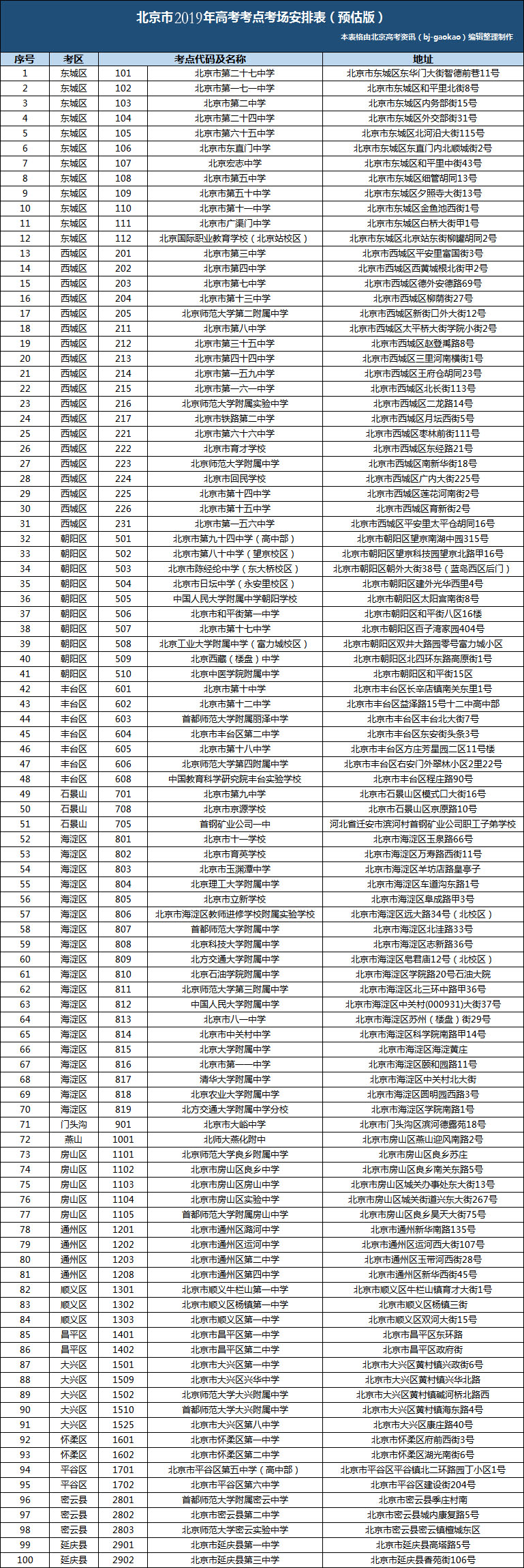 2019年北京市具体的考点请以准考证为准!以下北京市考点为历年高考考点,如有增减请以新公布的信息为准!