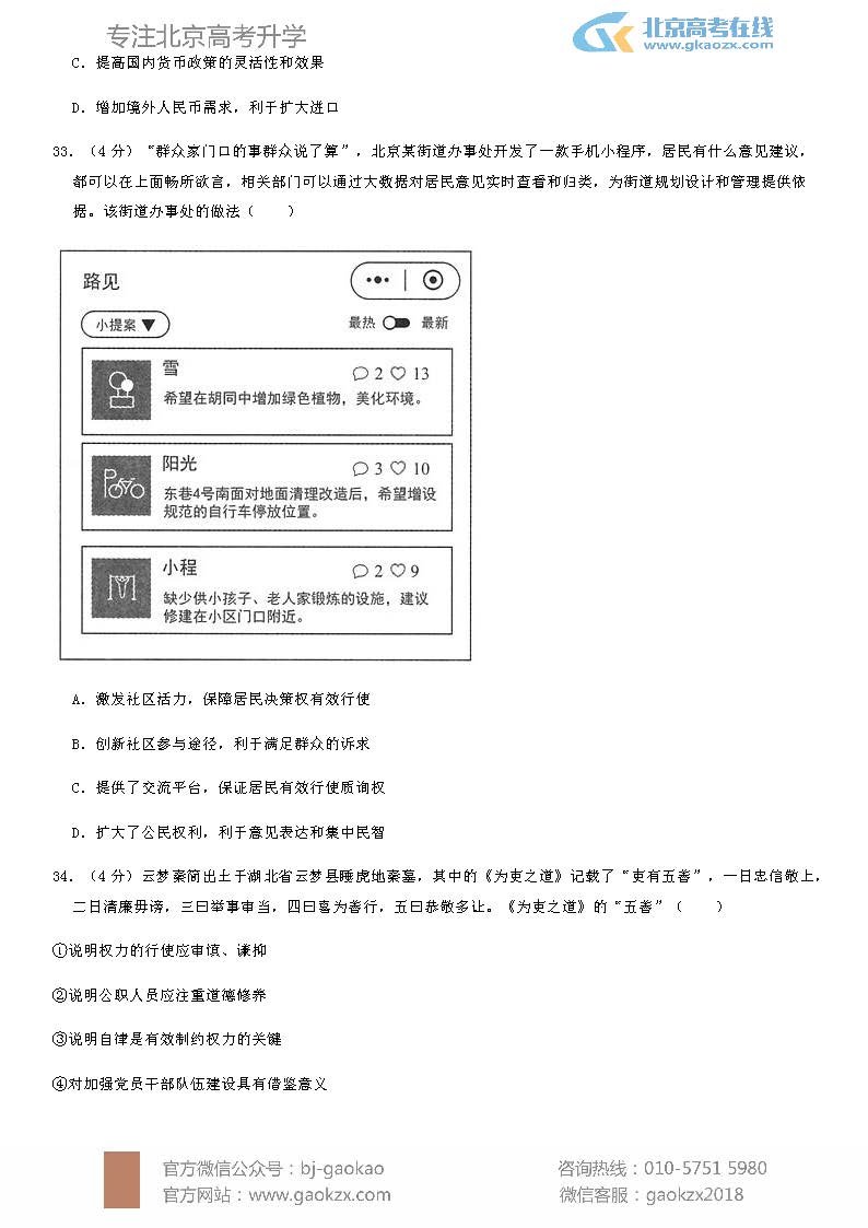 北京高考在线网整理了2018年北京市高考文综真题及答案,供考生学习参考。