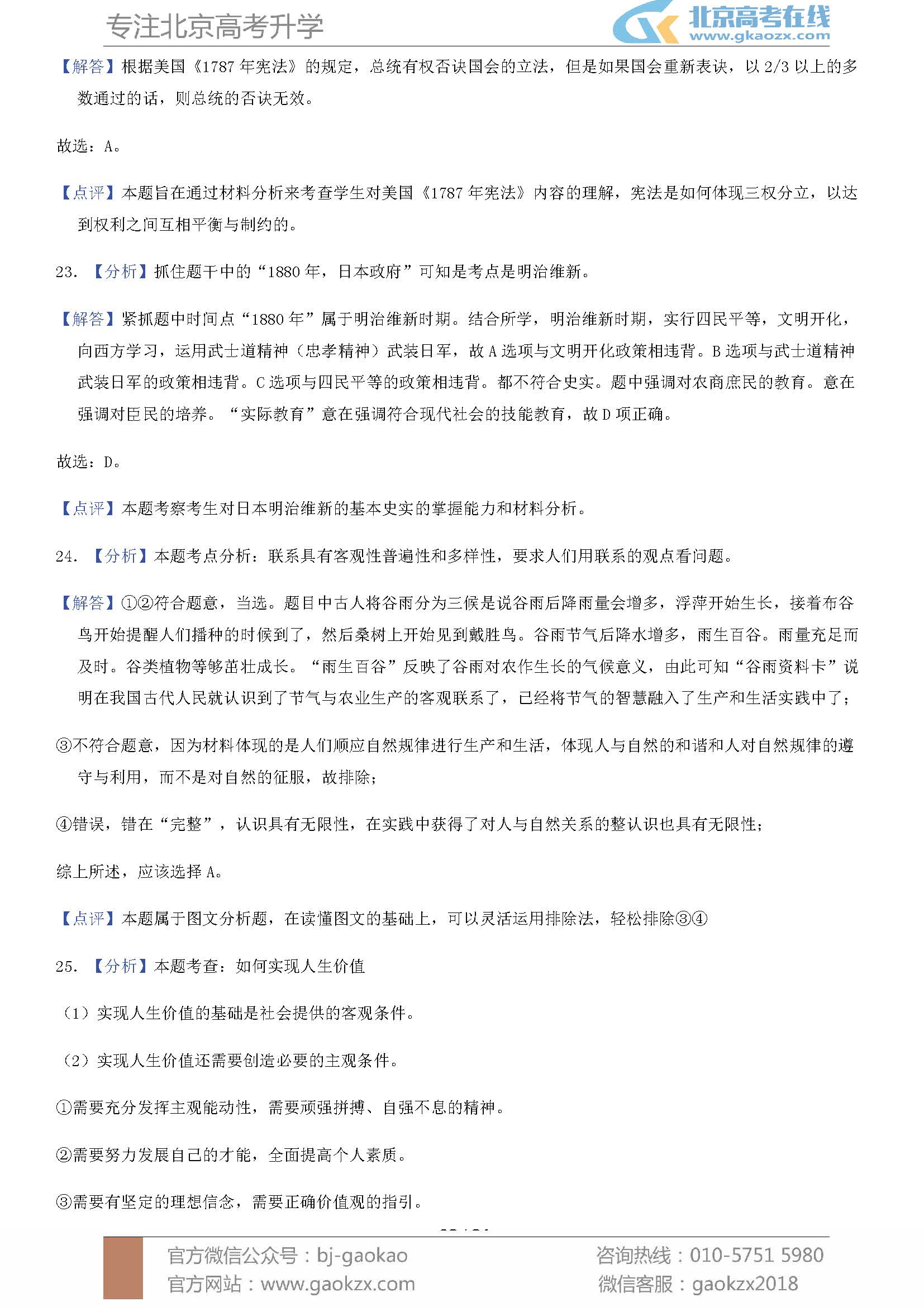 北京高考试题答案