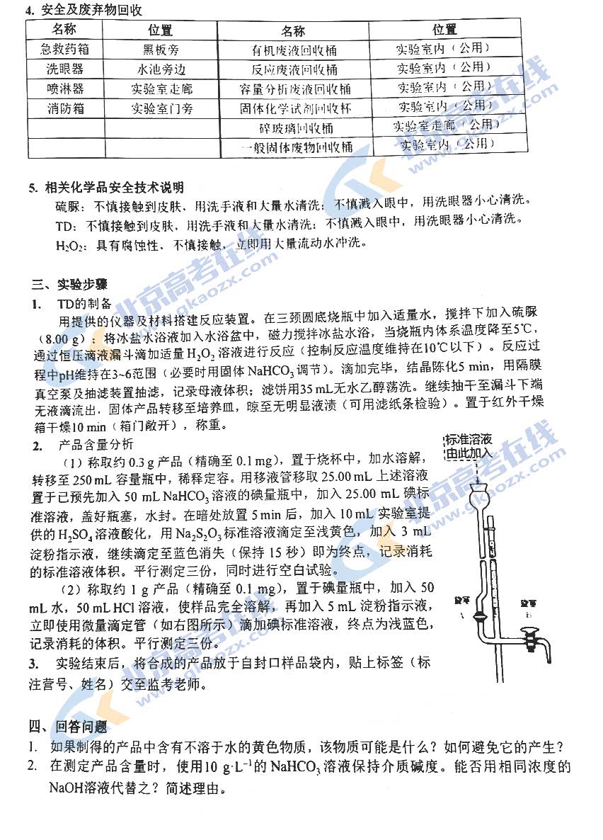 12月1日,2019年第33届中国化学奥林匹克决赛进行了实验考试,北京高考在线团队收集整理了实验试题及答案,供参考。