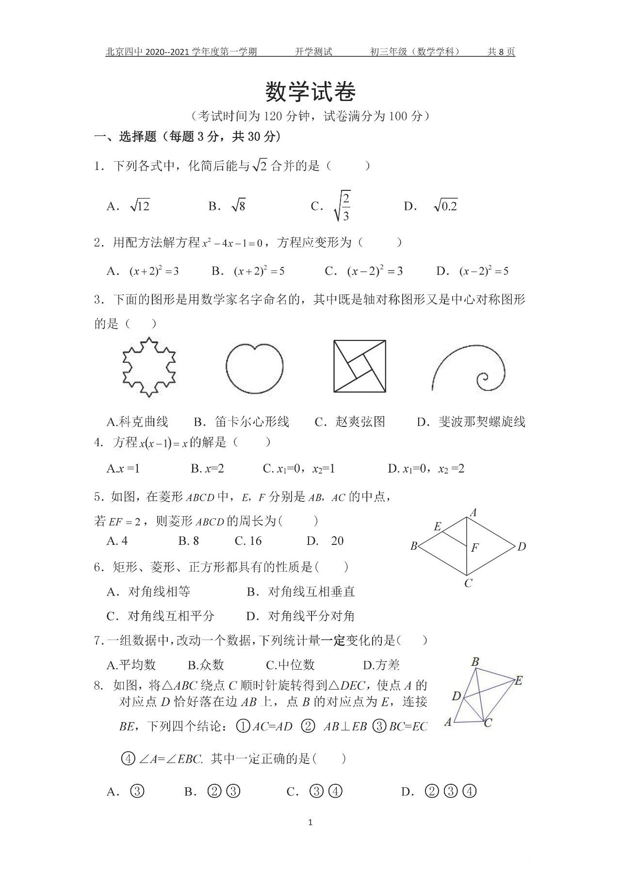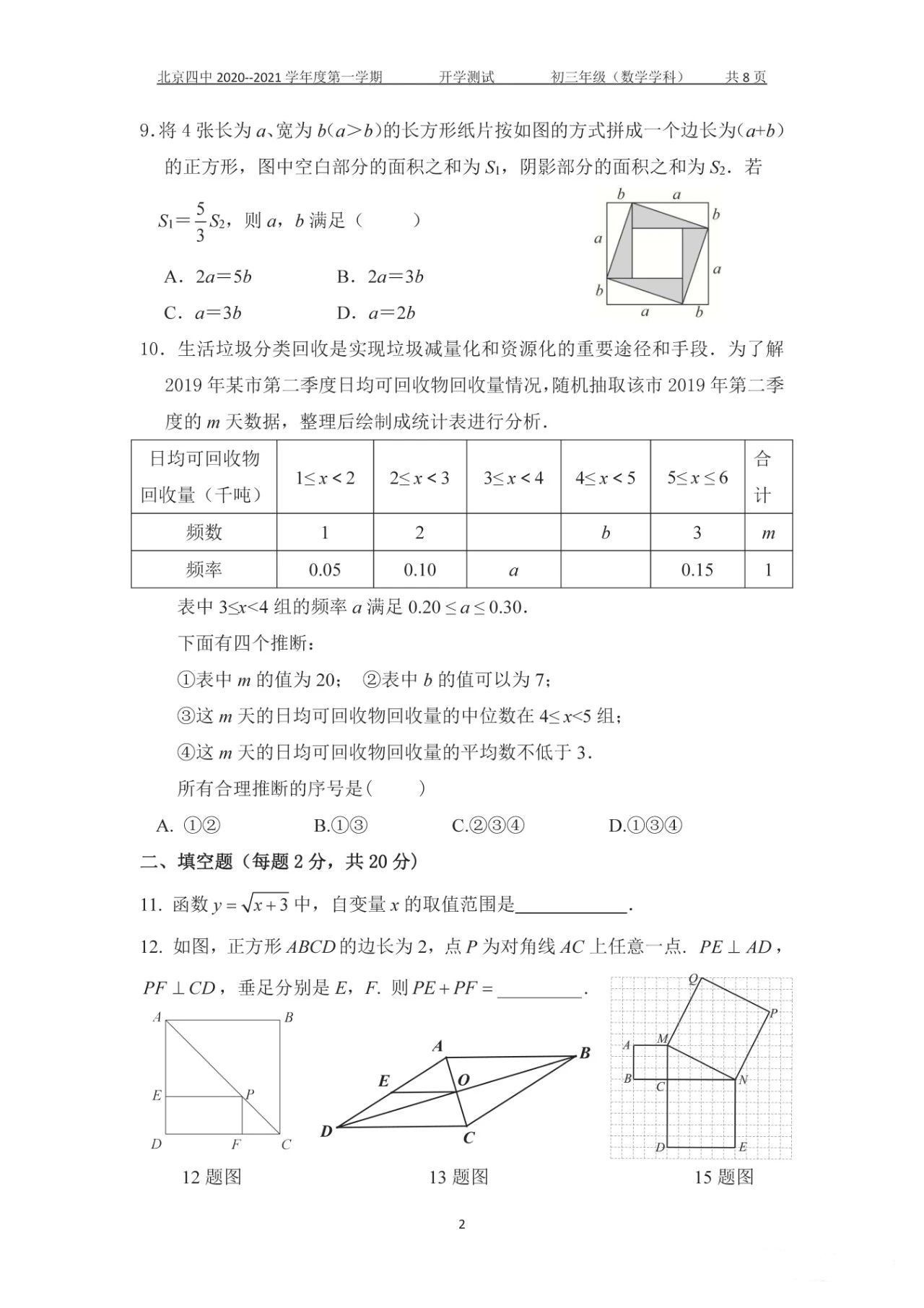 初中升高中也是同学对自身北京高考在线搜集整理了2020年北京四中初三开学考试题学习成果的检测,能升到好高中也是家长学生共同希望的。
