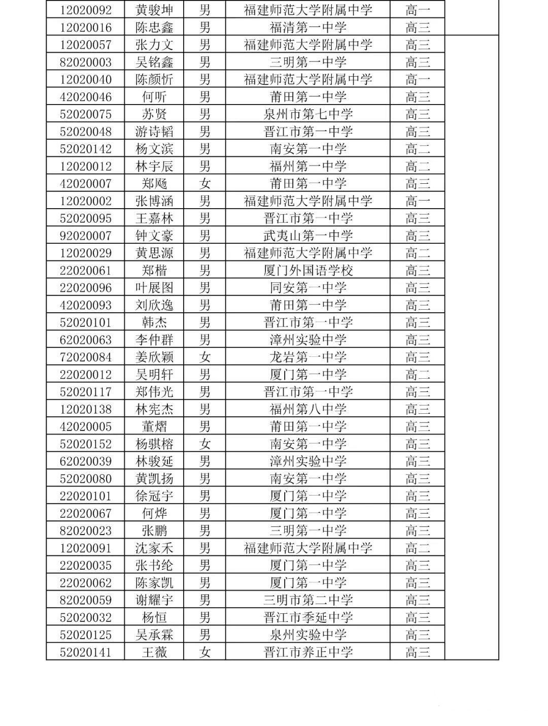2020年第37届福建物理复赛实验考试名单出炉了,学霸们都主要来自福建师范大学附属中学、龙岩第一中学、莆田第一中学等等。