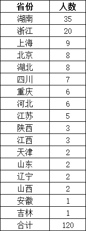 2020年全国中学生物理决赛中,金牌获得者一共来自全国17个省份。作为竞赛大省,湖南在本次竞赛中成绩优异,金牌获得人数35人,占到总人数的29%。浙江紧随其后,金牌获得人数20人,占到总人数的16%。上海、北京、湖北三个省份平分秋色,人数在10人左右。