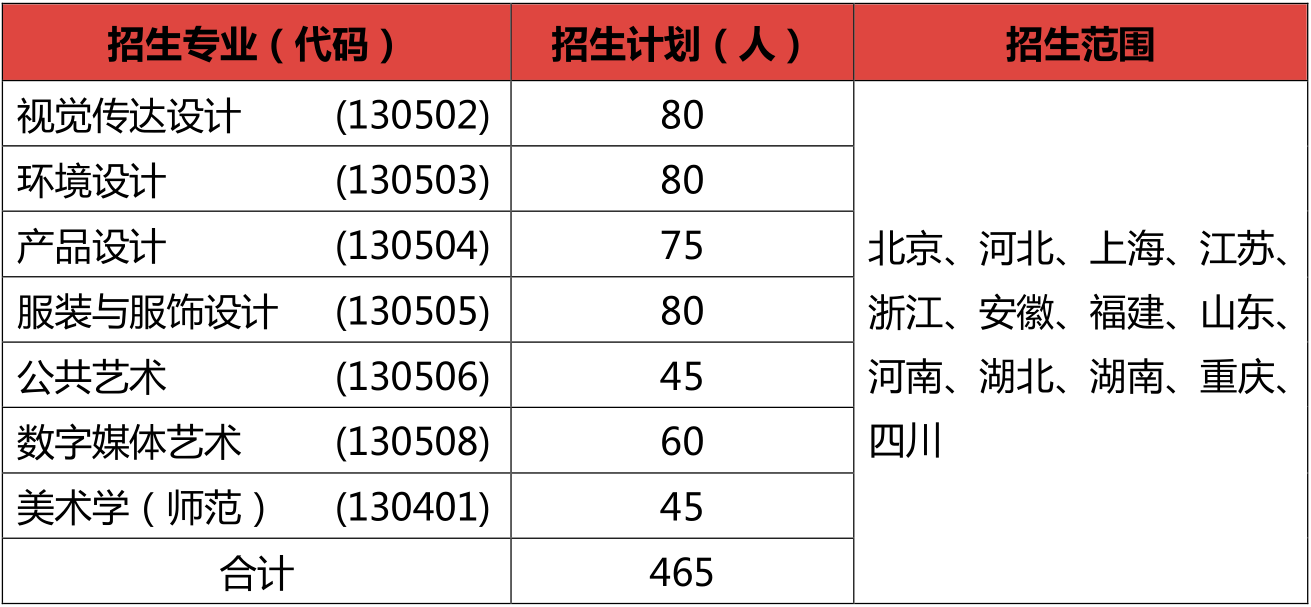 说明:① 以上省份的考生无需参加我校组织的专业校考。② 分省招生计划最终以各省级招生考试机构公布的为准。
