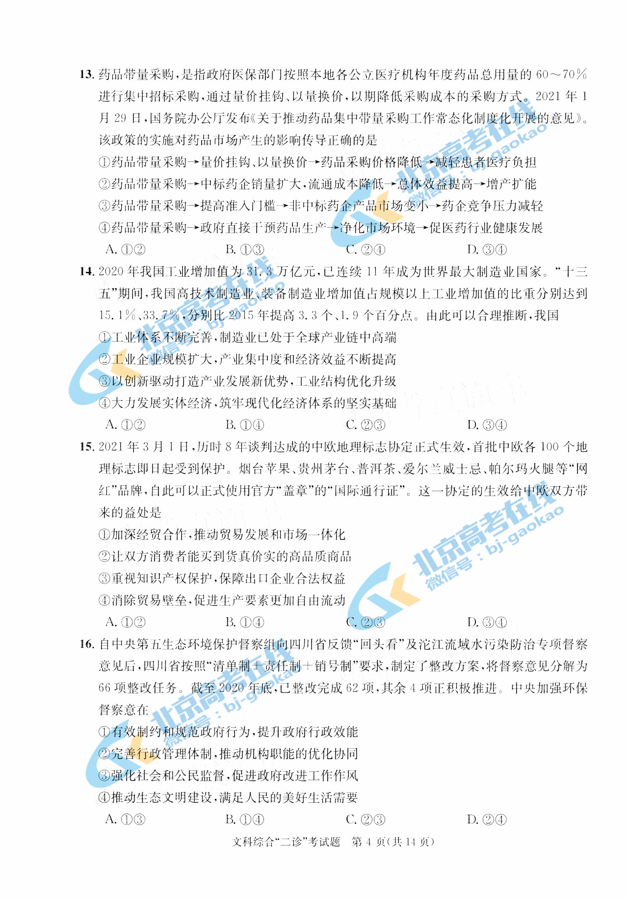 2021年成都二诊文综试题及答案出炉啦!北京高考在线团队整理电子版试题及答案,一起来看!
