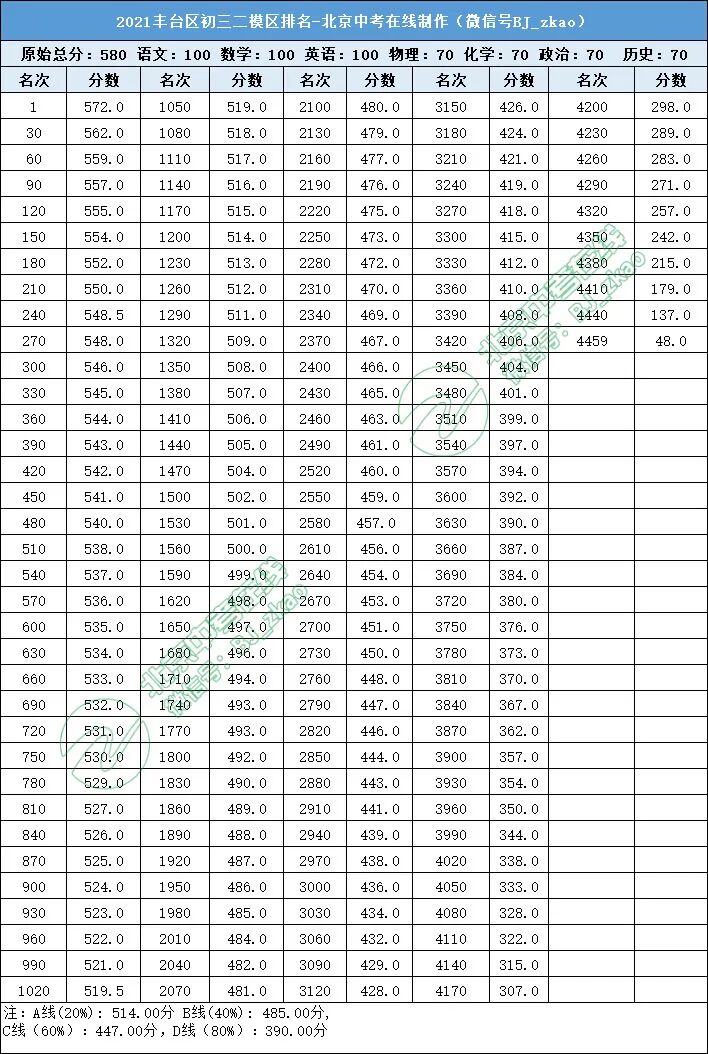 2021丰台初三二模区排名