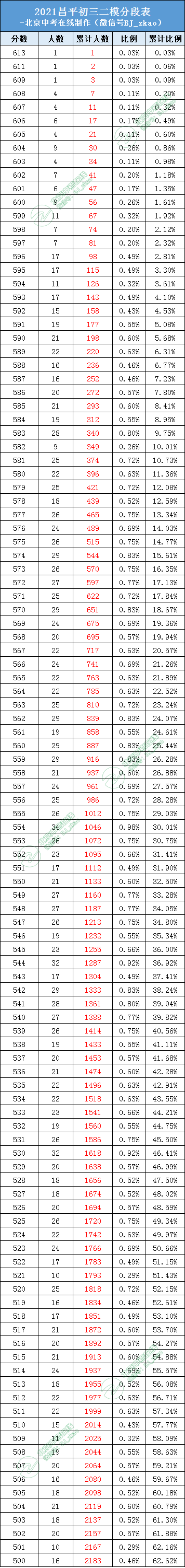 2021昌平初三二模区排名