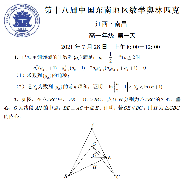 2021年中国东南地区数学奥林匹克高一试题详细解析