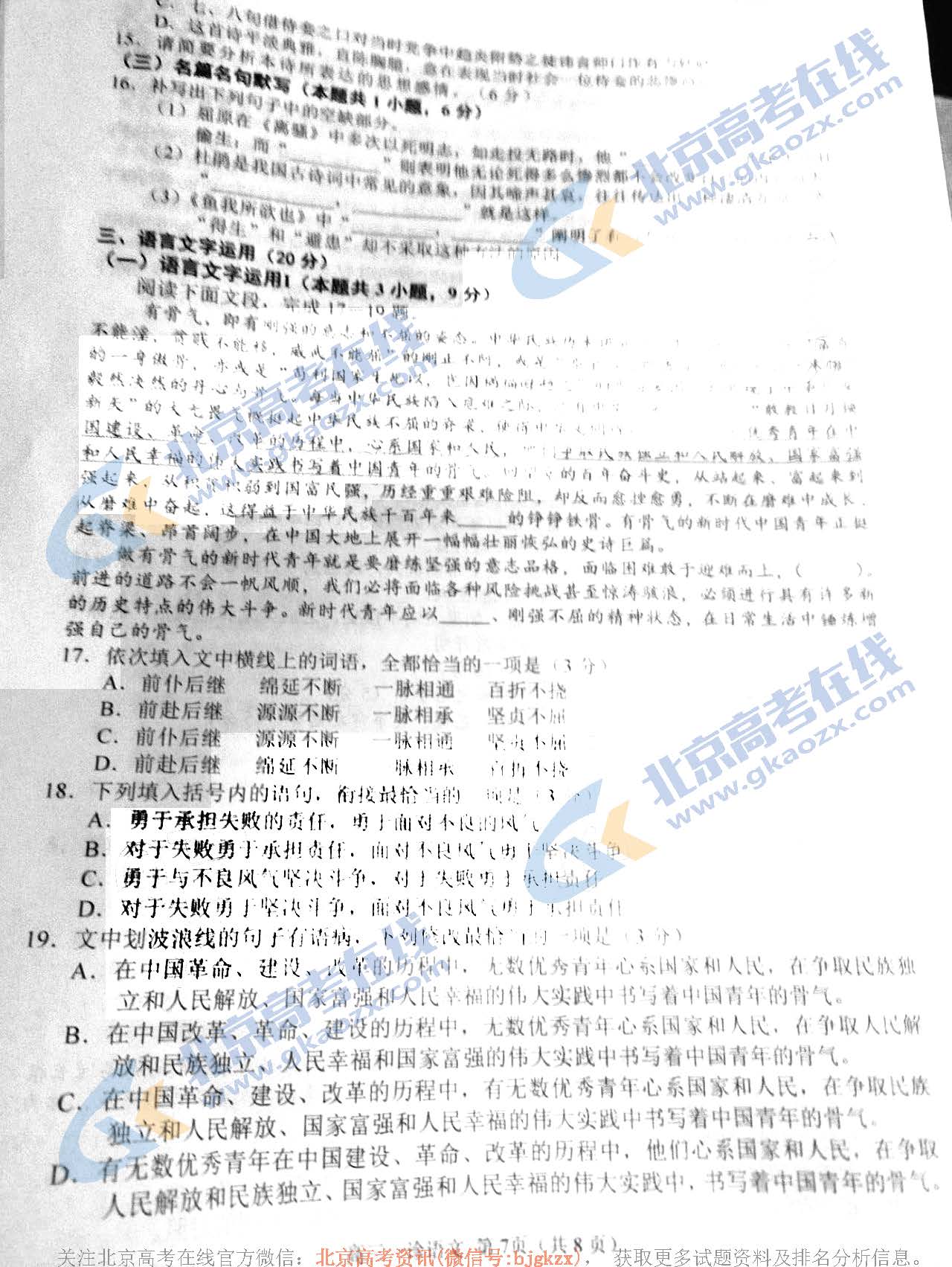 北京高考试题答案