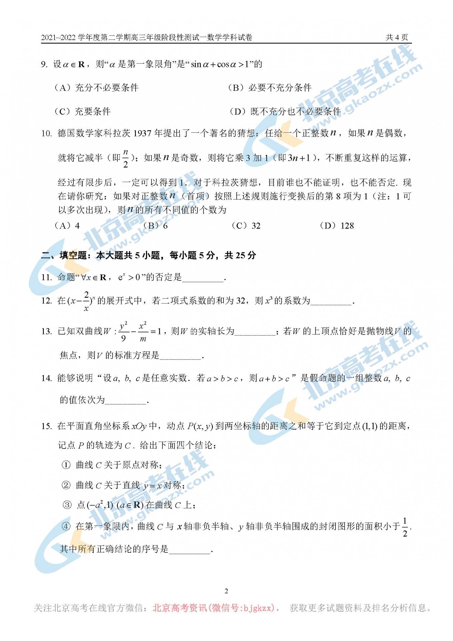 本文为大家整理了北京市第四中学高三第二学期阶段性测试数学试题及答案,欢迎同学们在线下载。
