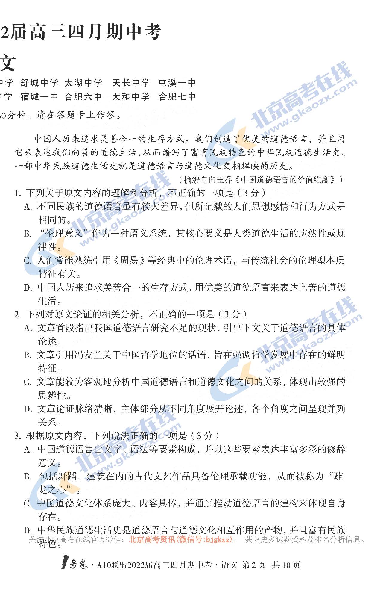 2022安徽A10联盟四月联考4月25日-16日进行,下面整理了2022安徽A10联盟四月联考语文试题及答案,仅供下载学习!