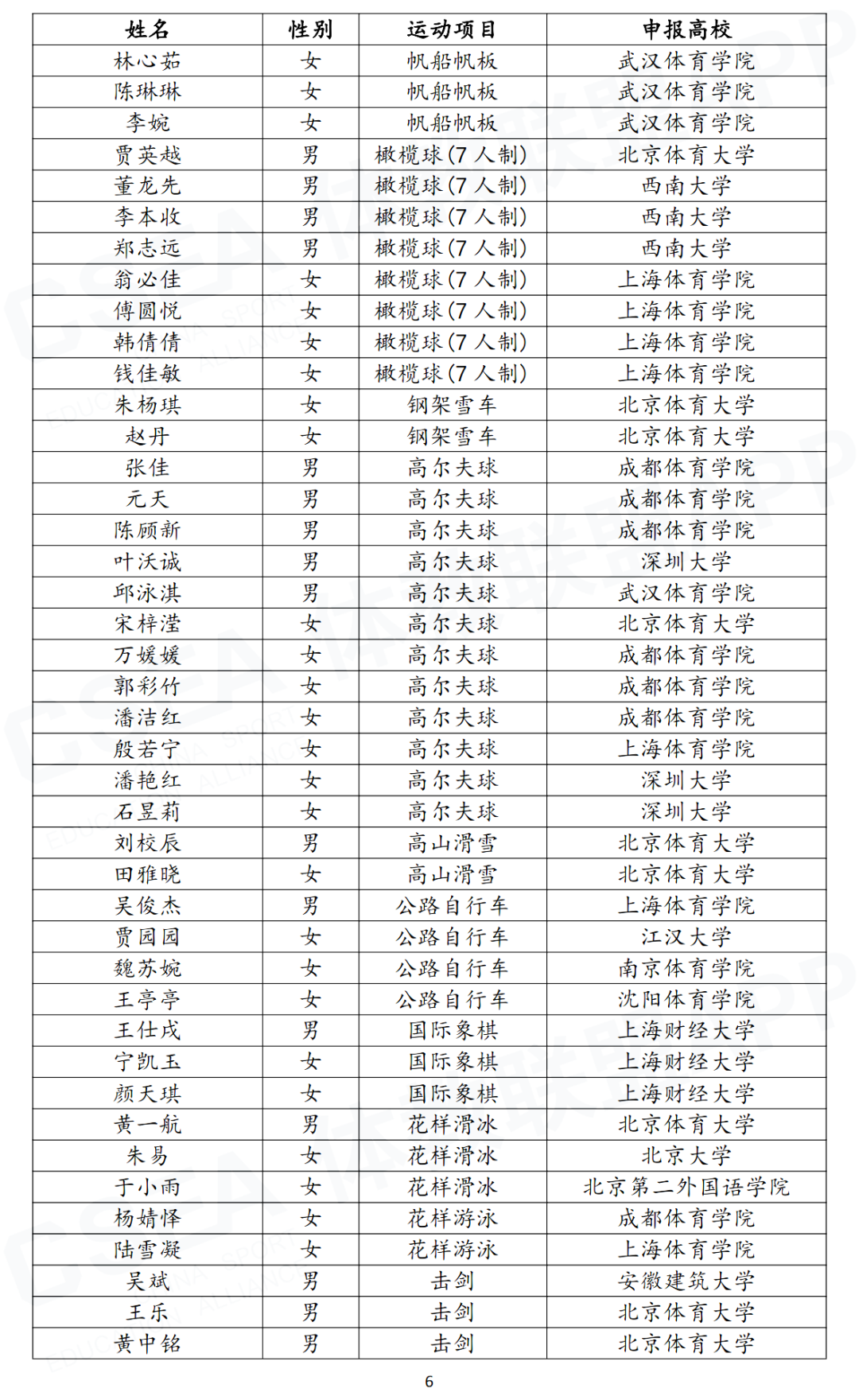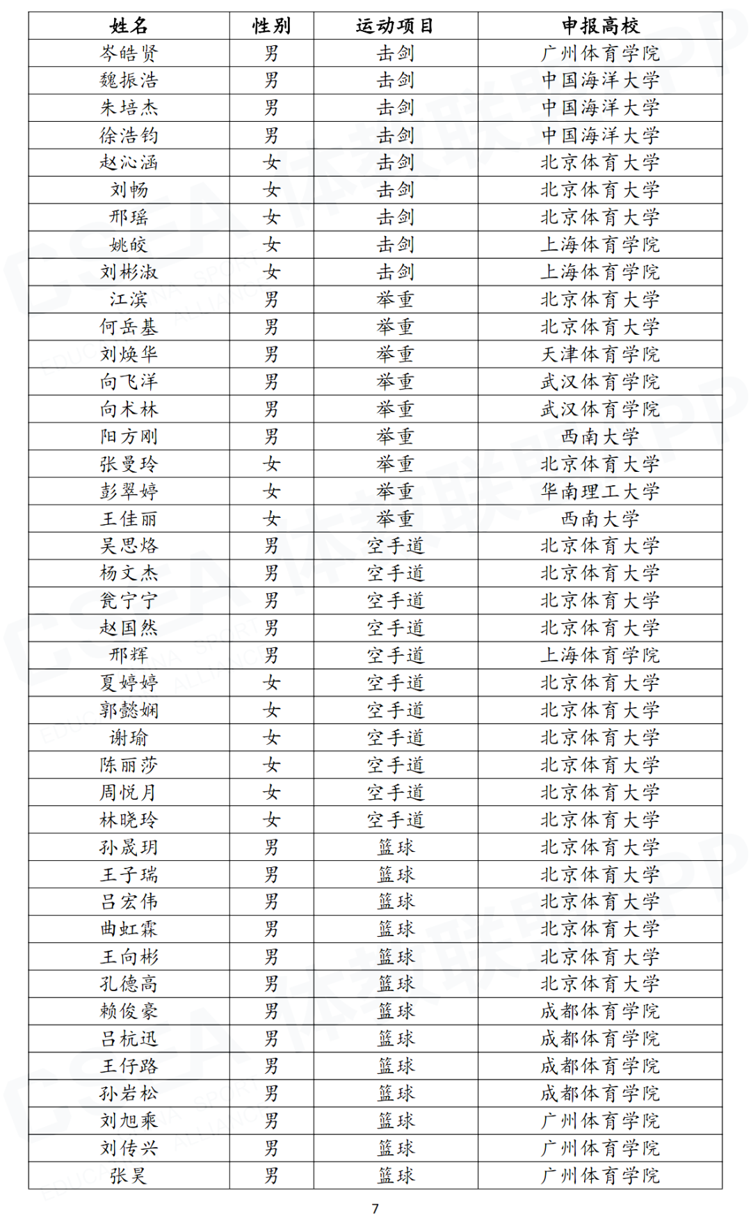 2020年优秀运动员本科保送推荐名单出炉!2020-03-05