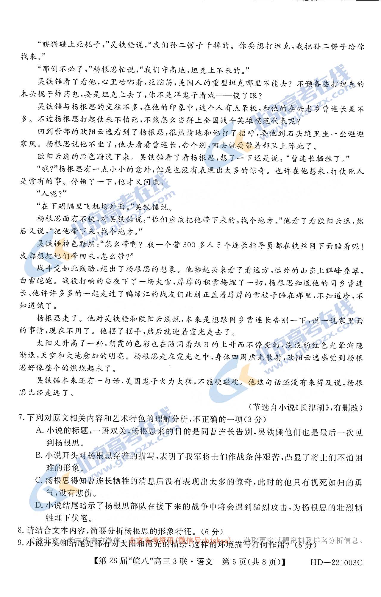 高三联考试题八校联考语文答案皖南八校联考