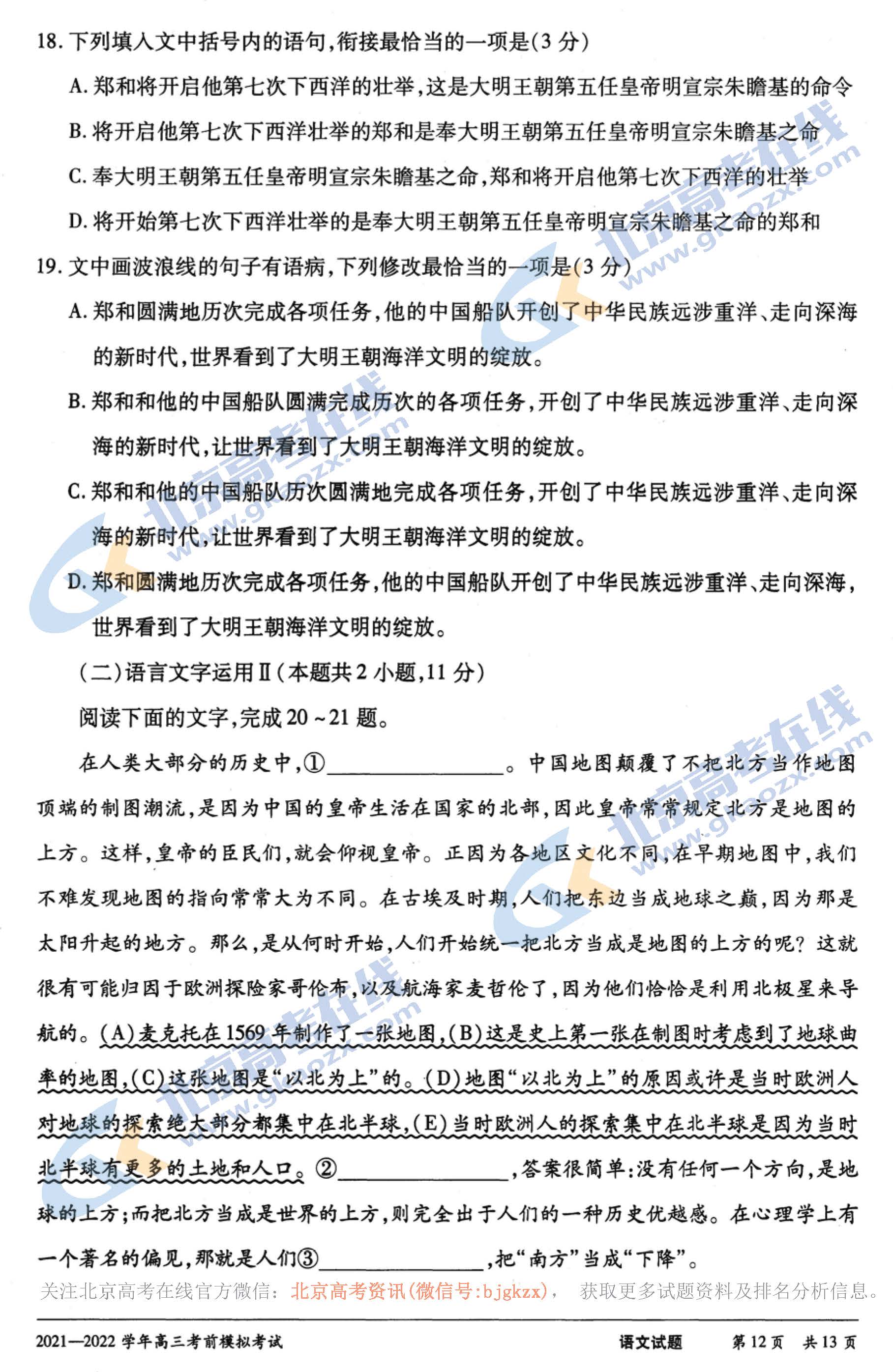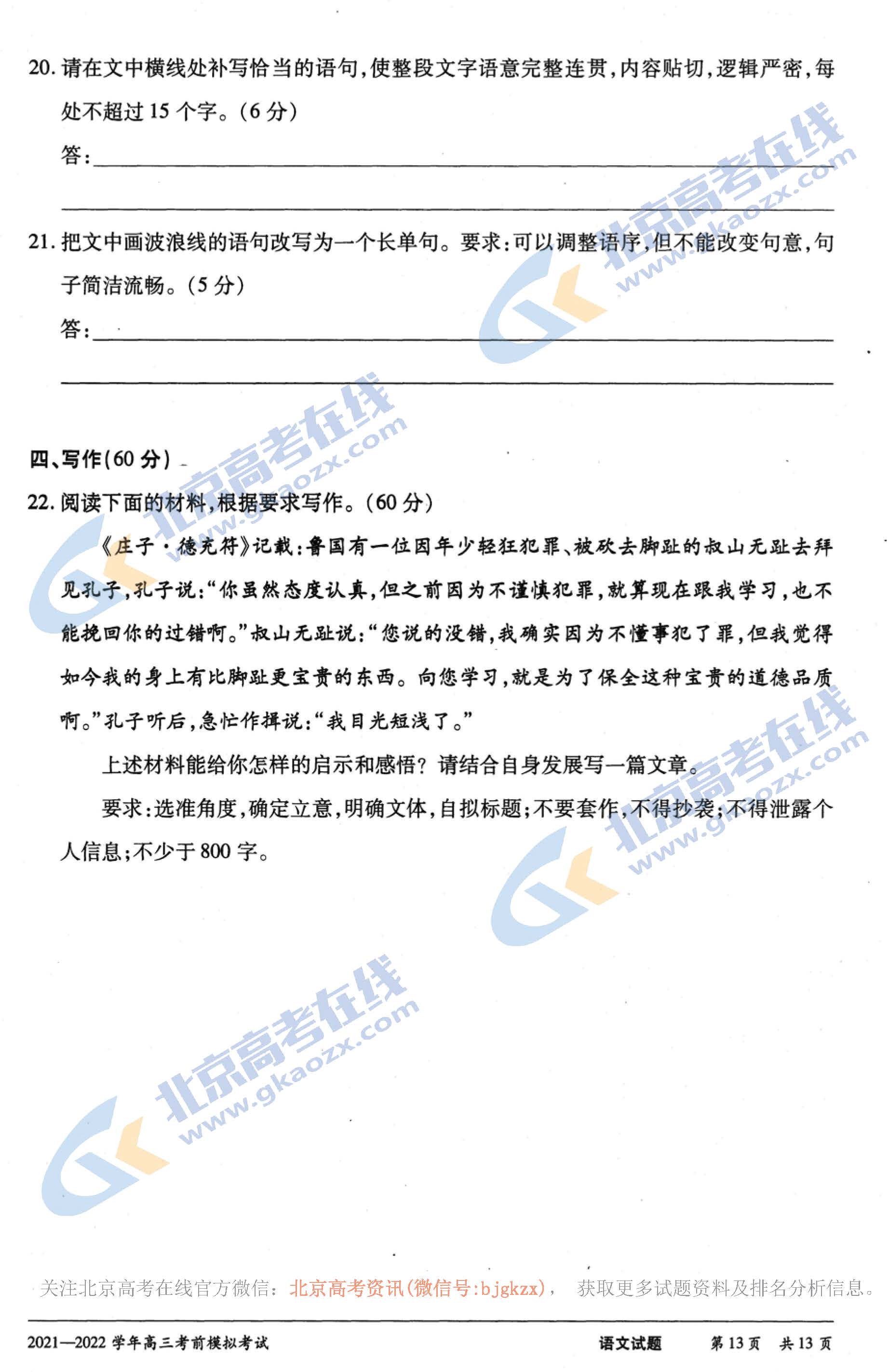 北京高考试题答案