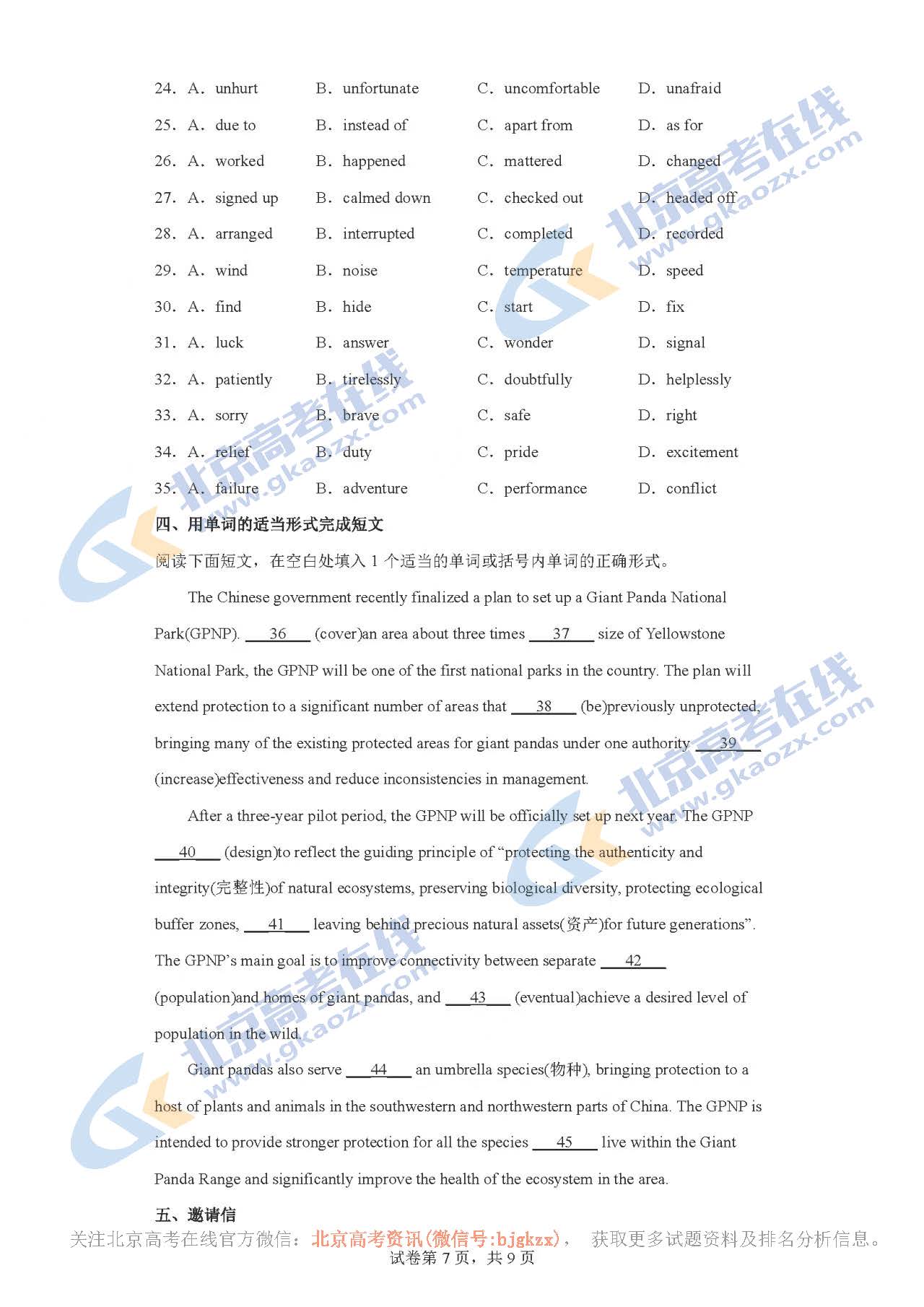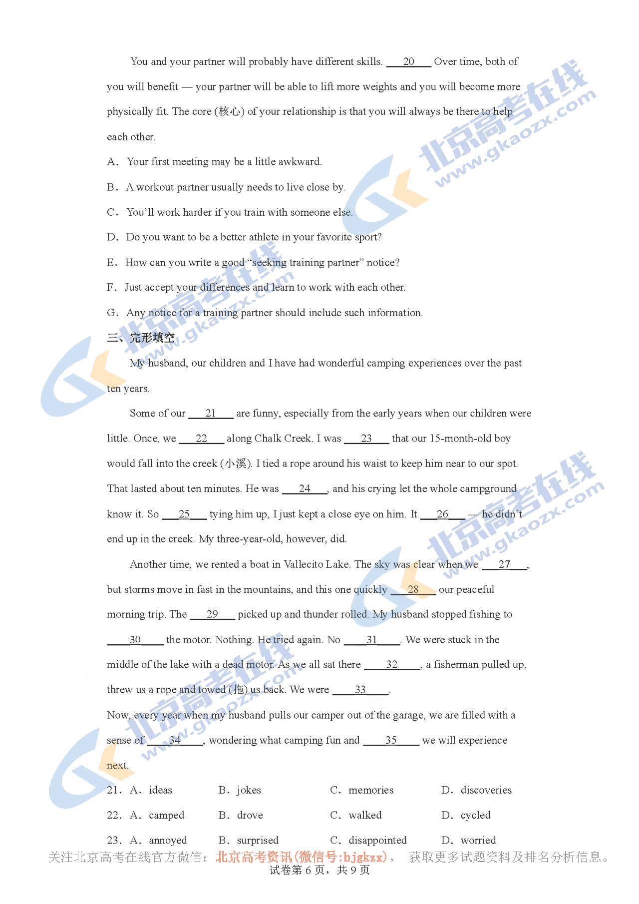 北京高考试题答案
