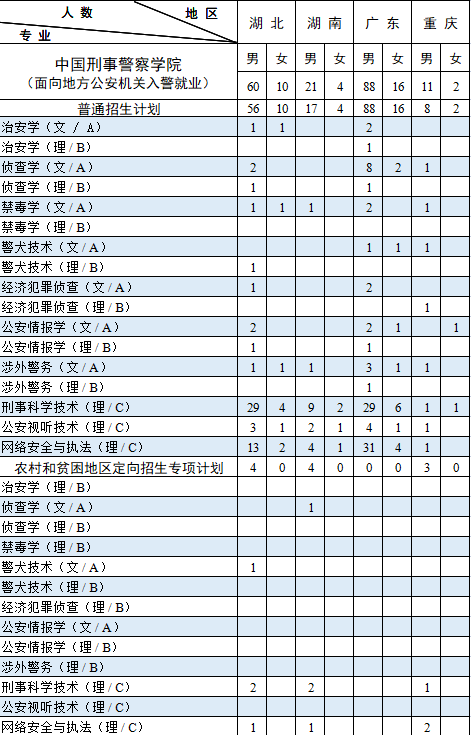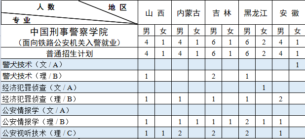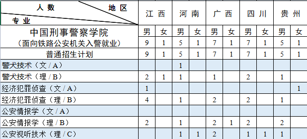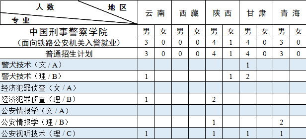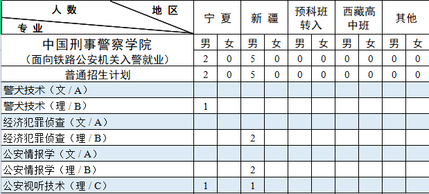 新疆计划中含南疆单列计划 1 人,即经济犯罪侦查(理)男生 1 人。