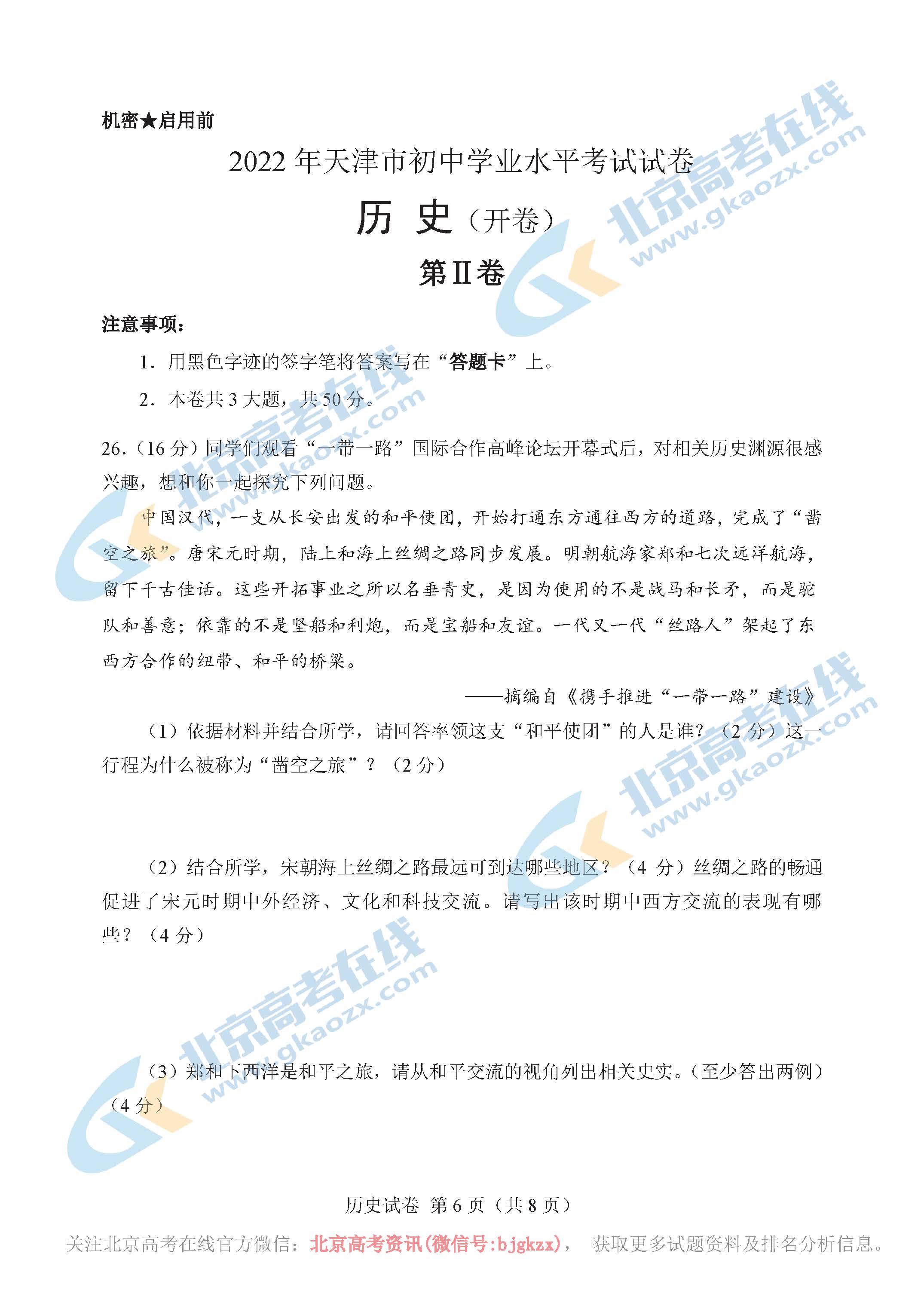 本文整理了2022年天津中考历史试题及答案,分享给同学们在线下载学习。