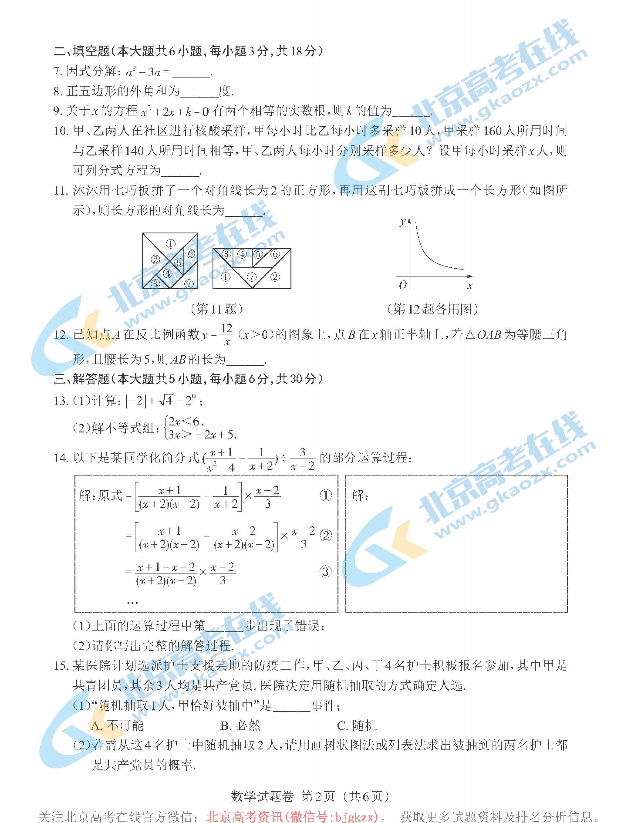 2022年江西中考数学试题及答案