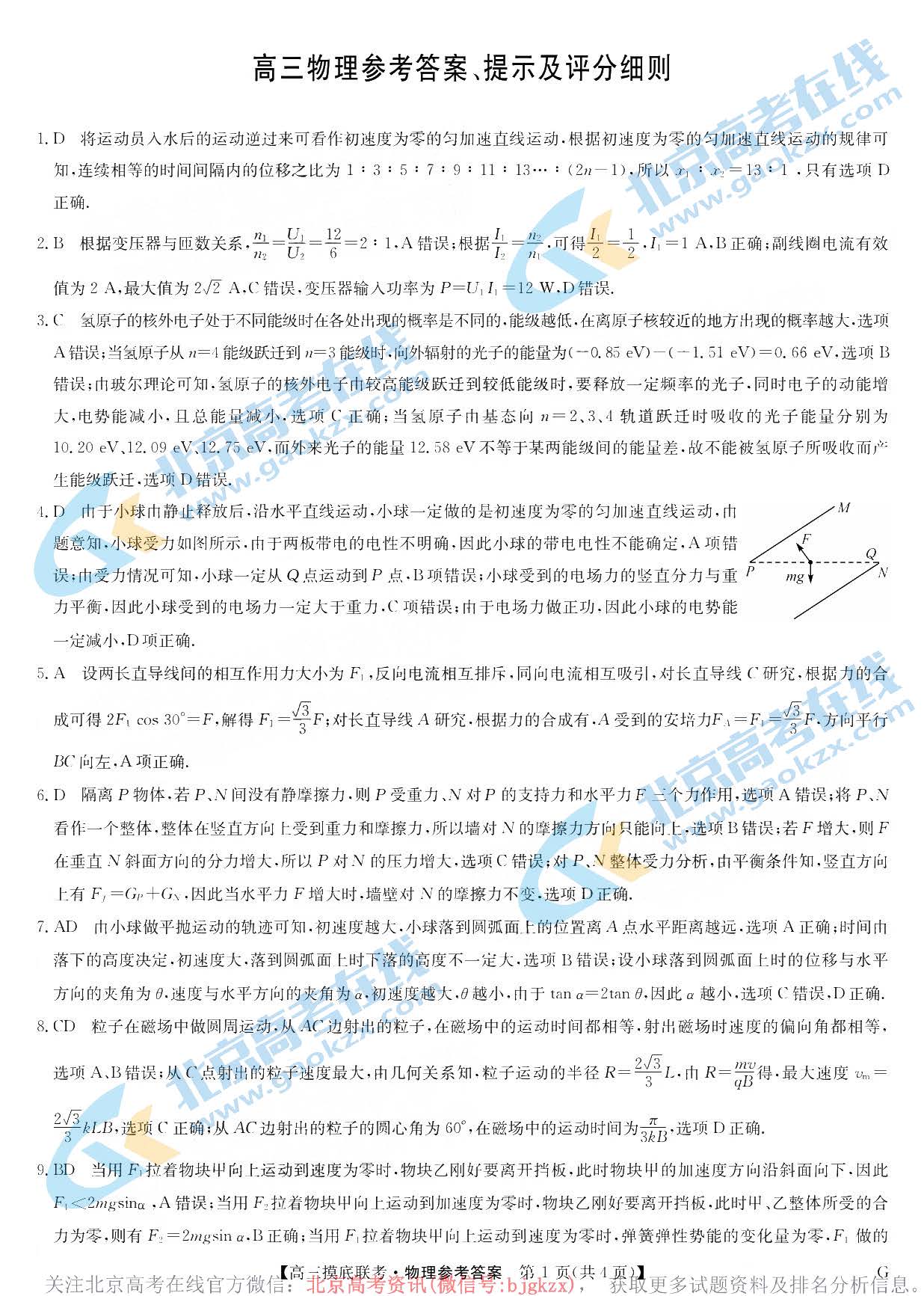 立即下载:2022-2023学年河南九师联盟高三上学期摸底联考物理答案