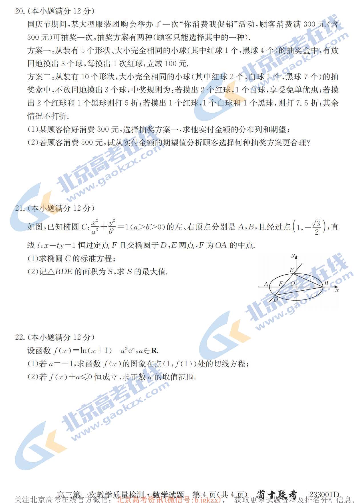 本文整理了2023安徽省十联考高三第一次教学质量检测数学试题及答案,分享给同学们下载练习!
