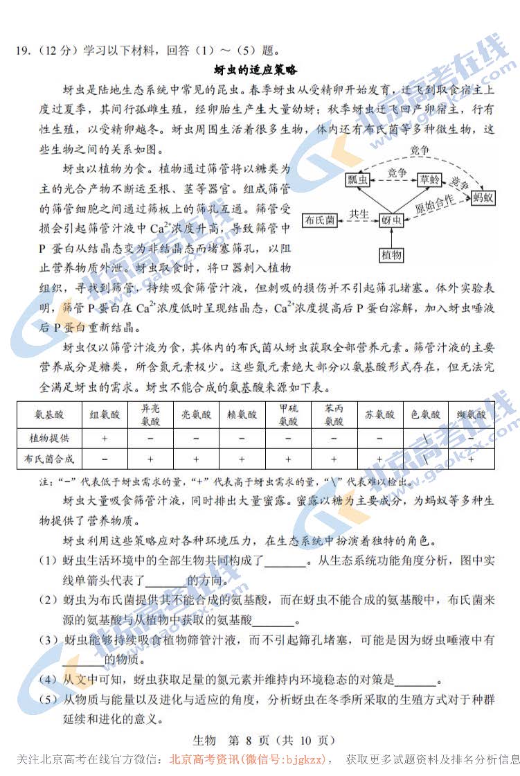 2022年北京高考生物试题及答案