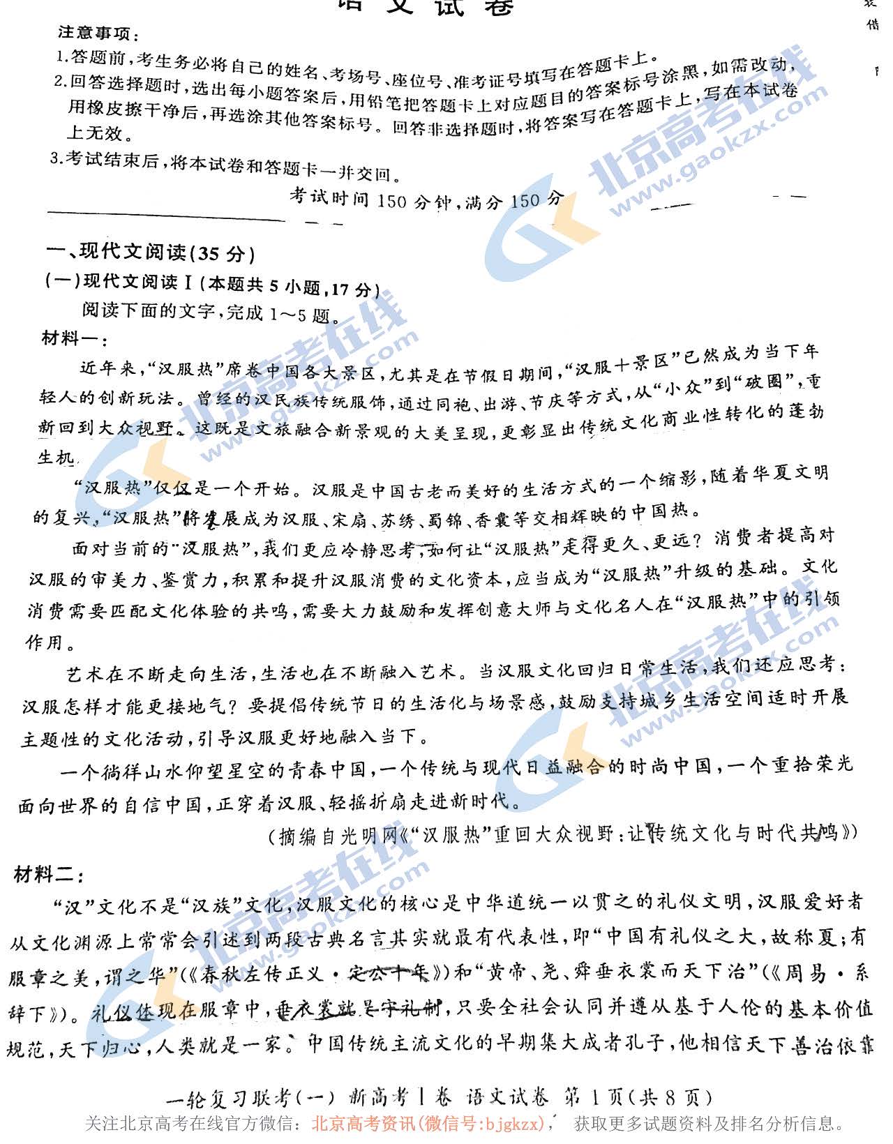 2022-2023学年百师联盟高三9月联考已结束,为了方便同学们查找相关试题学习,北京高考在线团队整理了百师联盟高三9月联考(新高考卷)语文试题及答案,详情如下: