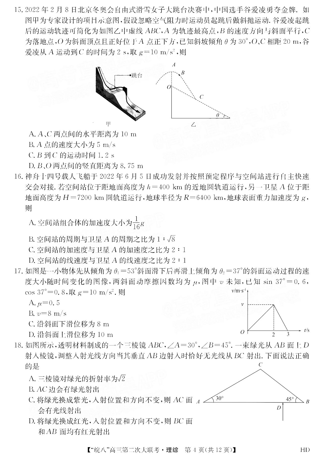高三理综试题2023高三联考试题皖南八校高三第二次联考