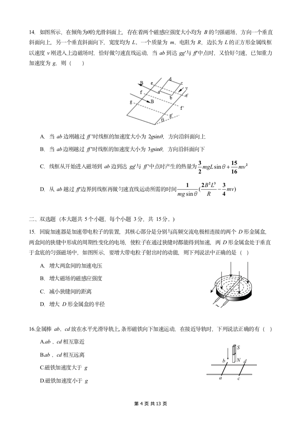 2023年北京理工大学附属中学高二期末(适应测试)物理试题及答案