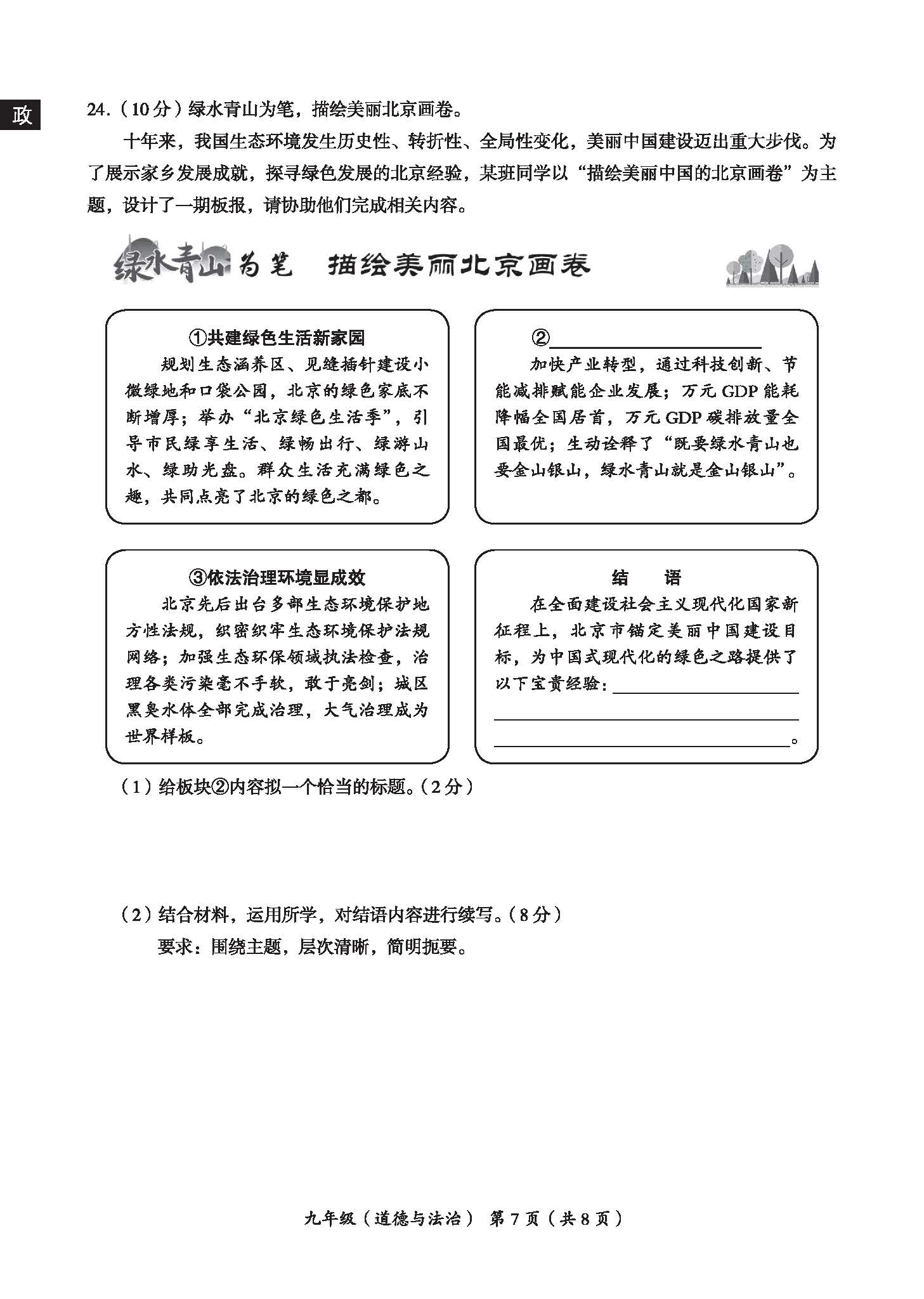 2023年北京海淀区初三上学期期末道德与法治试题及答案