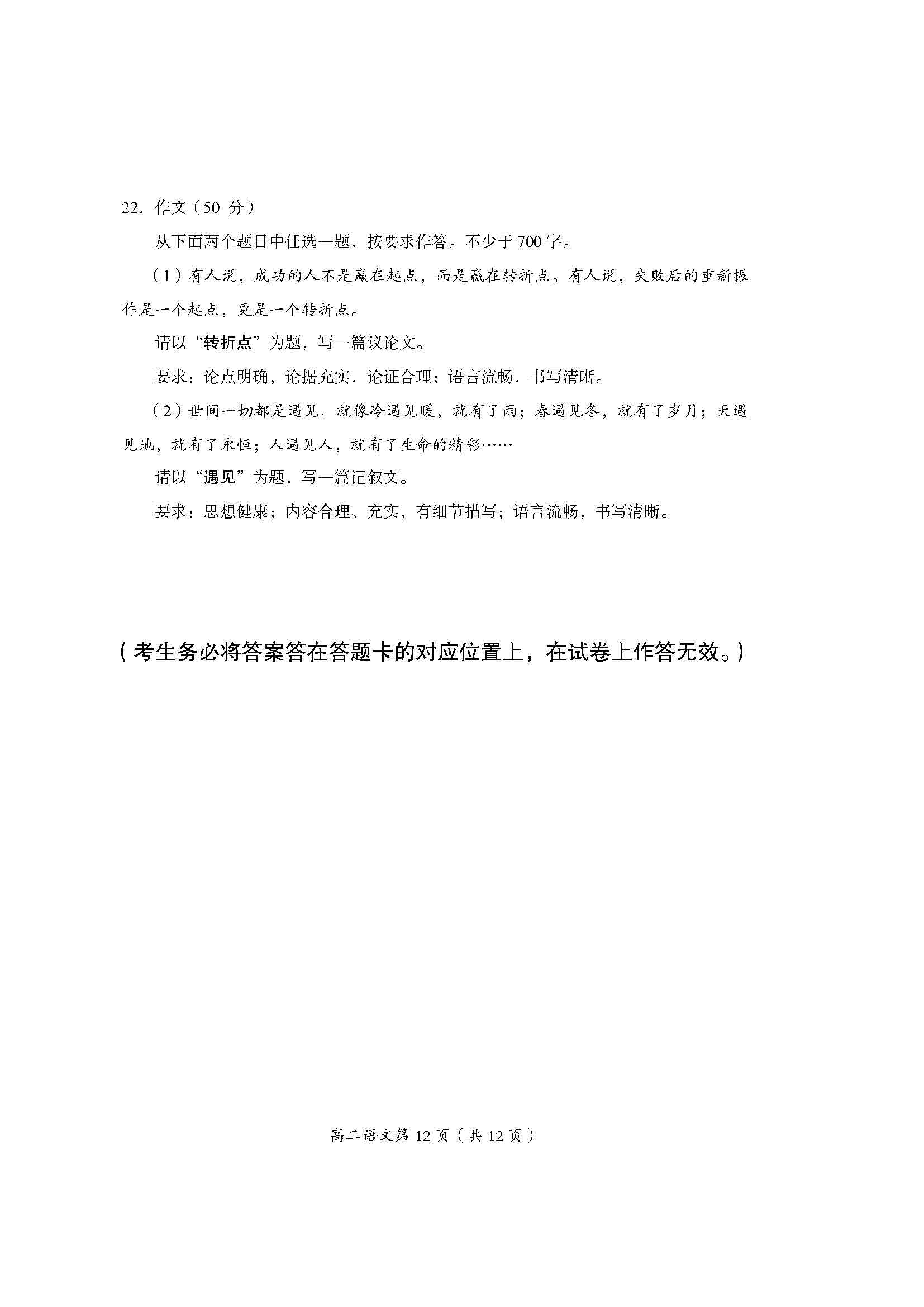 房山期末语文2023北京期末考试高二上学期期末试题