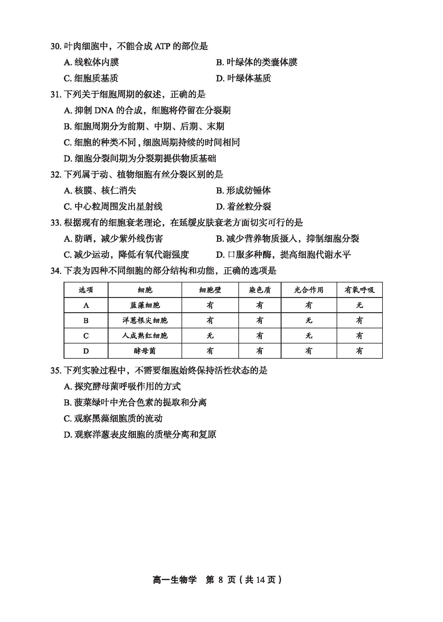 2023年北京丰台区高一上学期期末生物试题及答案