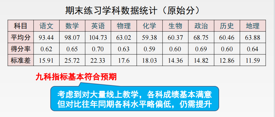 根据此次海淀期末学科数据统计表进行了专业分析如下: