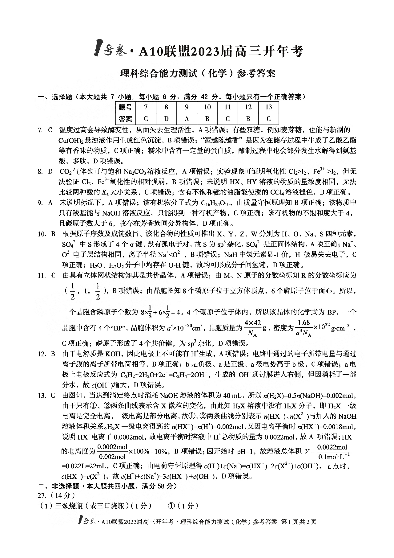 2023安徽A10联盟高三开年考2月1日开考,本文为大家搜集整理了理科综合试题及答案!