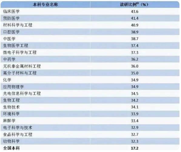 材料科学与工程、生物医学工程、微电子科学与工程、无机非金属材料工程等交叉性学科的读研比例也较高,与这些专业面向的行业对人才层次需求较高有关。