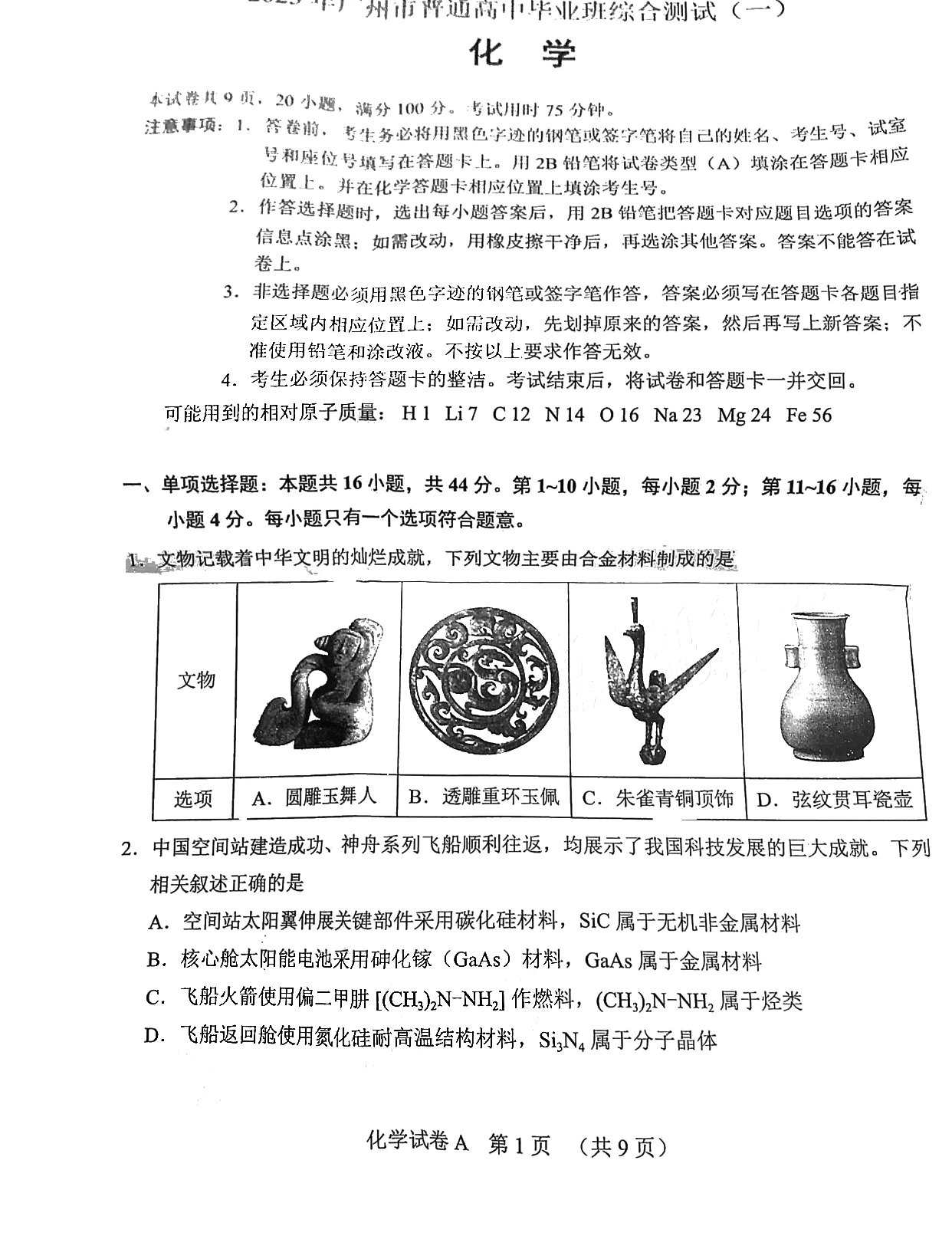 2023年广州一模于3月13日举行,一模试题具体一定的参考价值,为此,北京高考在线团队特为大家整理了2023广州一模化学科目试题及答案,需要的同学可以下载练习!