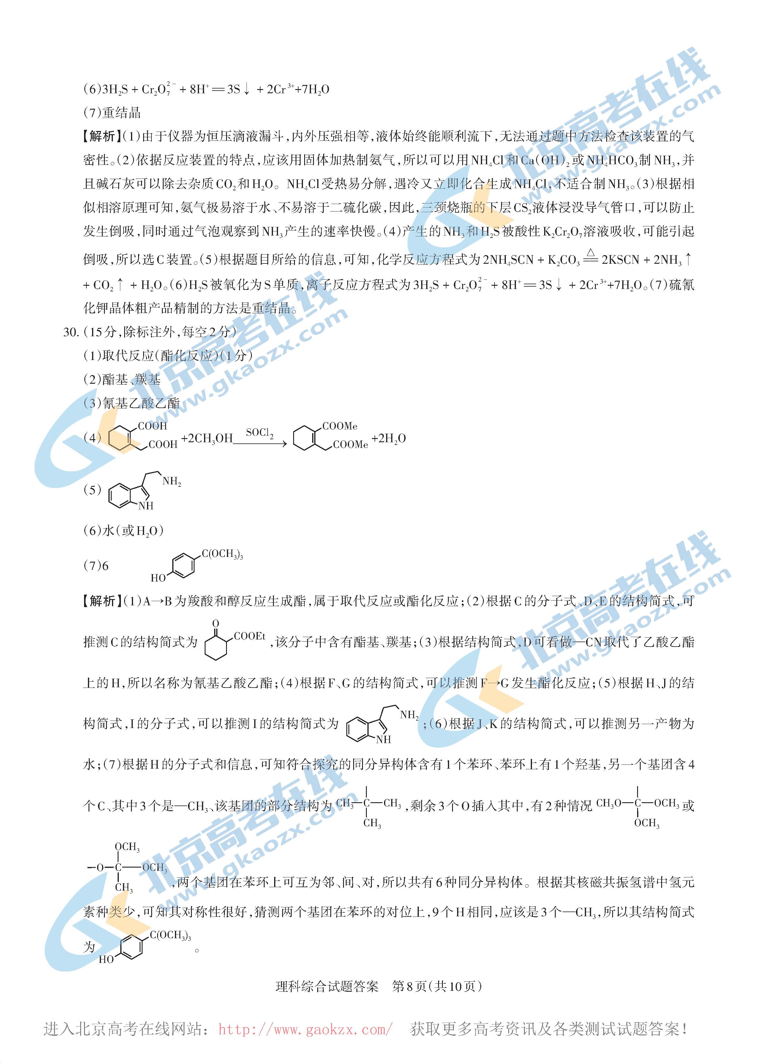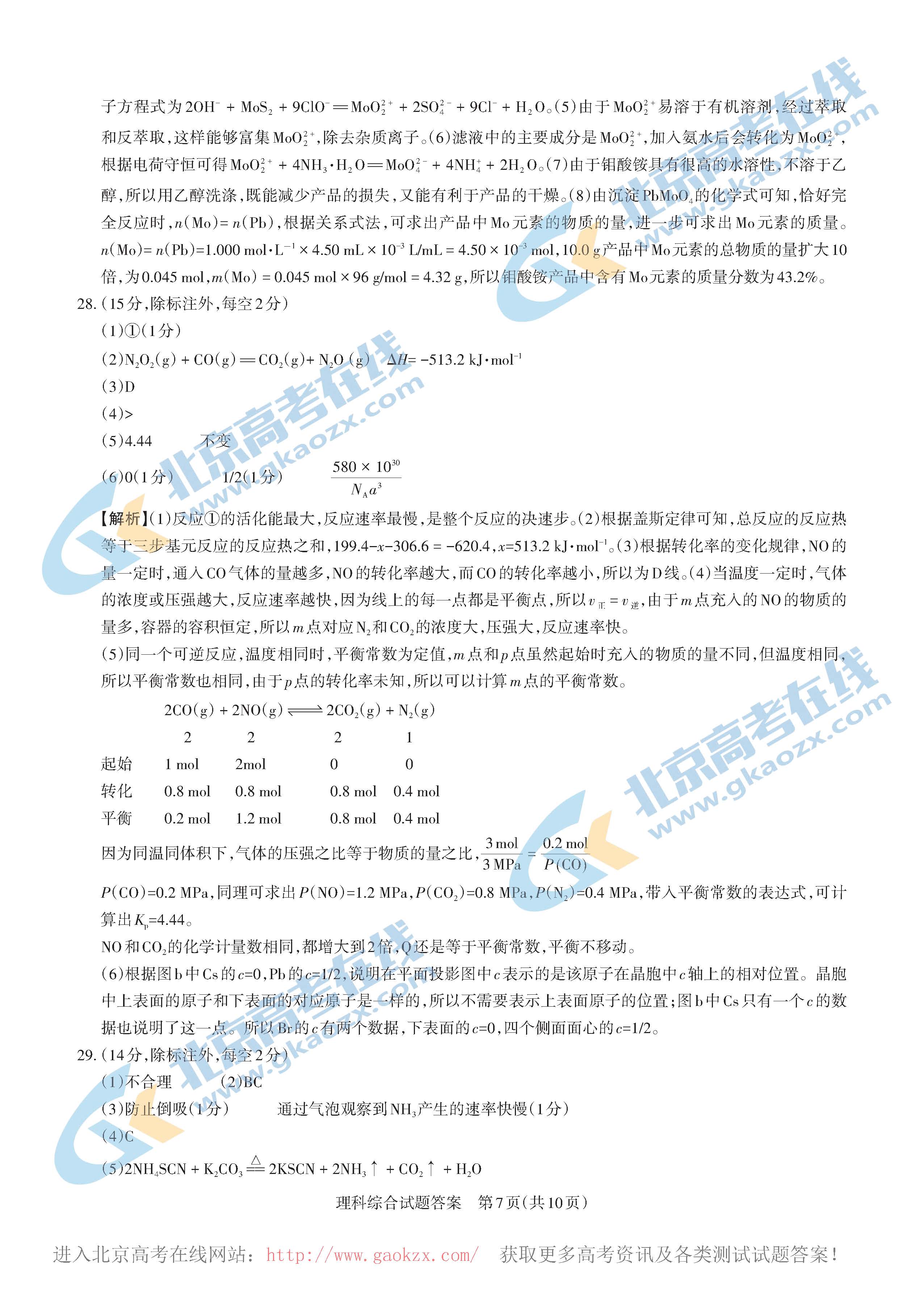北京高考试题答案